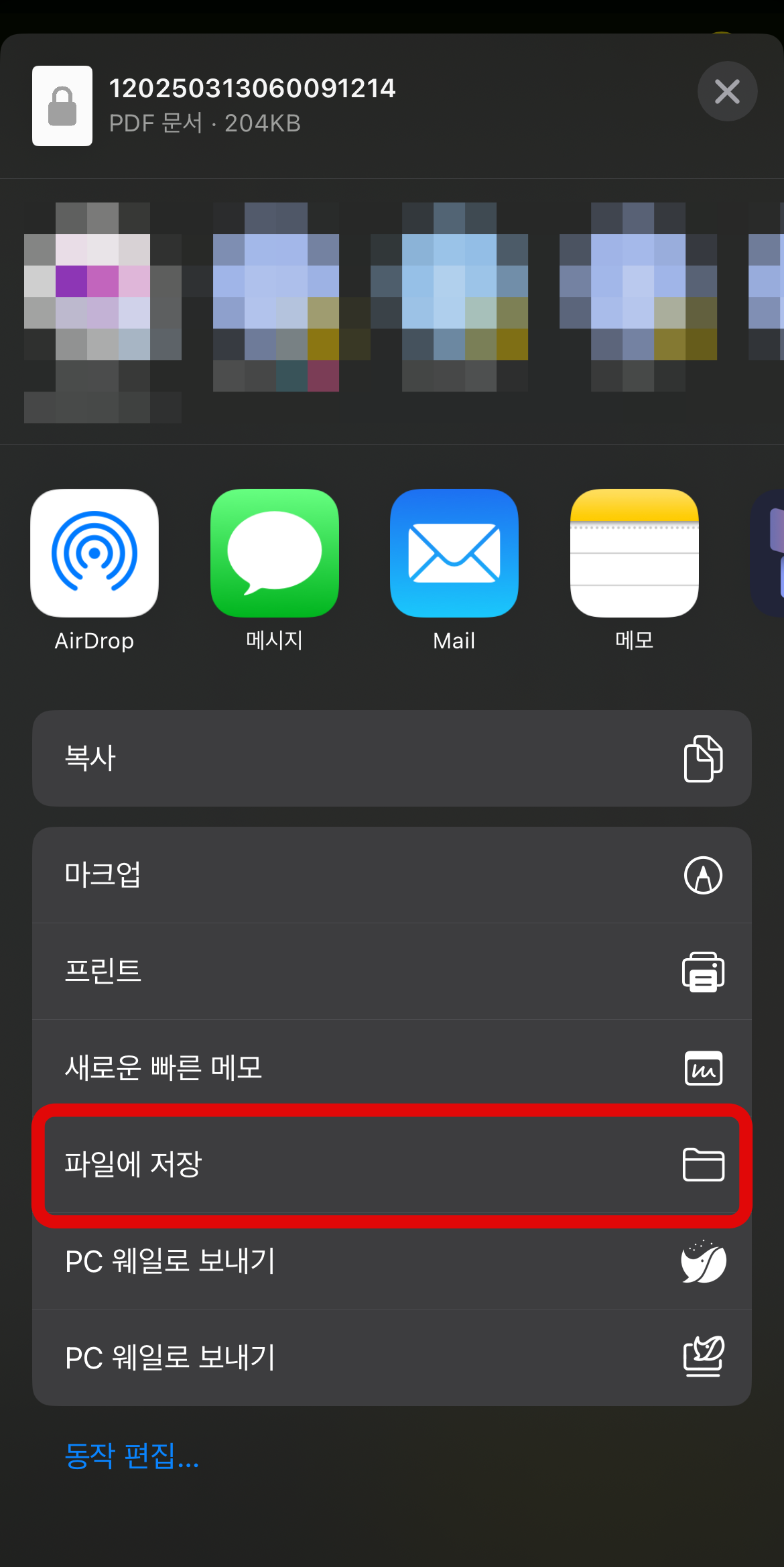 90일이 지나면 자동으로 소멸이 되므로 PDF파일로 저장을 해두는 것이 좋다. 왼쪽 아래에 있는 저장 버튼을 눌러 비밀번호를 설정하거나 비밀번호 없이 저장하기를 누른다. 그리고 아래에 보이는 파일에 저장을 누르면 저장이 완료된다. 파일에 들어가서 PDF파일을 열면 계속 사용을 할 수 있을 것이다.