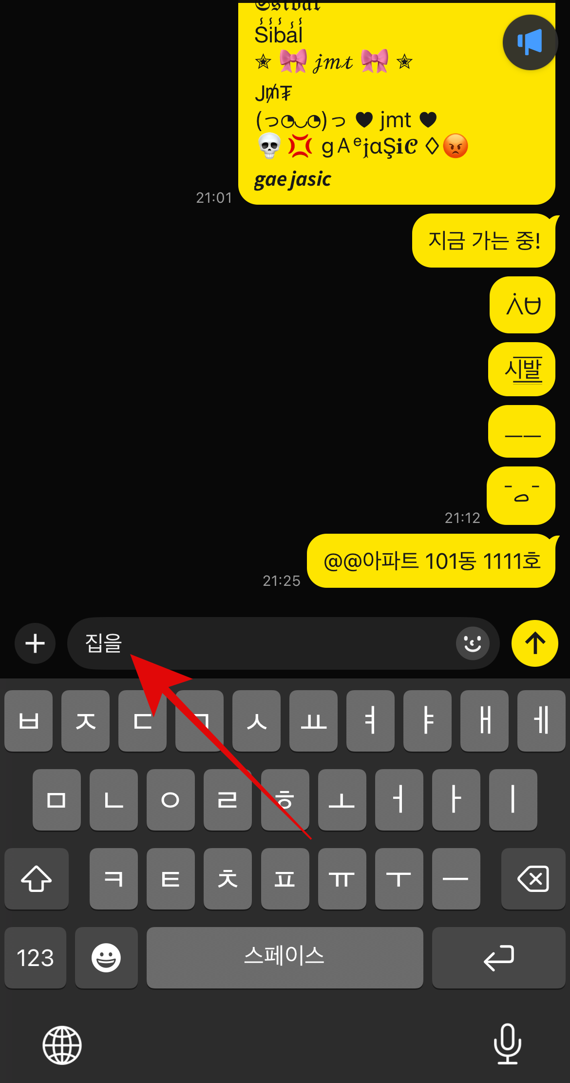 아까는 없었던 집이 추가된 것을 볼 수 있다. 이렇게 되면 아이폰 텍스트 대치 설정이 잘 된 것이다. 그리고 메모장이나 카톡으로 가서 집을 입력해 보면 자동으로 내가 설정한 상세한 주소가 나오는 것을 볼 수 있을 것이다. 이런 식으로 자주 사용하는 문구나 입력하기 어려운 이모티콘, 특수문자들을 설정을 해 놓고 사용하면 편리하게 사용할 수 있을 것이다.