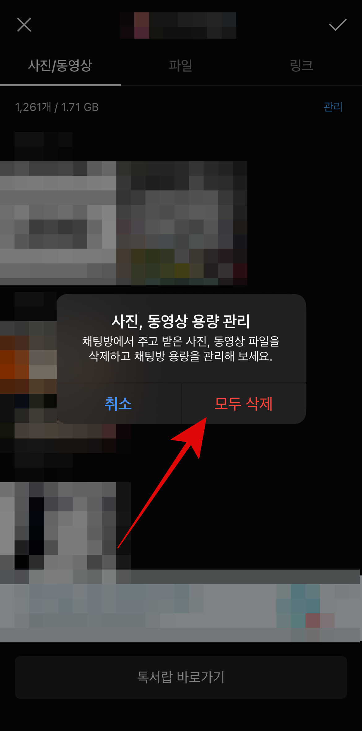 채팅방에서 주고받은 사진, 동영상을 삭제하여 아이폰 저장공간 늘리기에 도움을 준다. 사진과 동영상을 많이 주고받았다면 더 많은 공간을 확보할 수 있을 것이다. 하지만 그 카톡방에서는 다시 사진과 동영상은 확인할 수 없는 것을 알고 있어야 한다. 앞서 보여준 아이폰 저장공간에서보다 2기가가 더 생긴 것을 볼 수 있다. 이렇게 사진을 많이 주고받았던 단톡방을 정리하면 생각보다 많은 아이폰 저장공간 늘리기가 가능할 것이다.