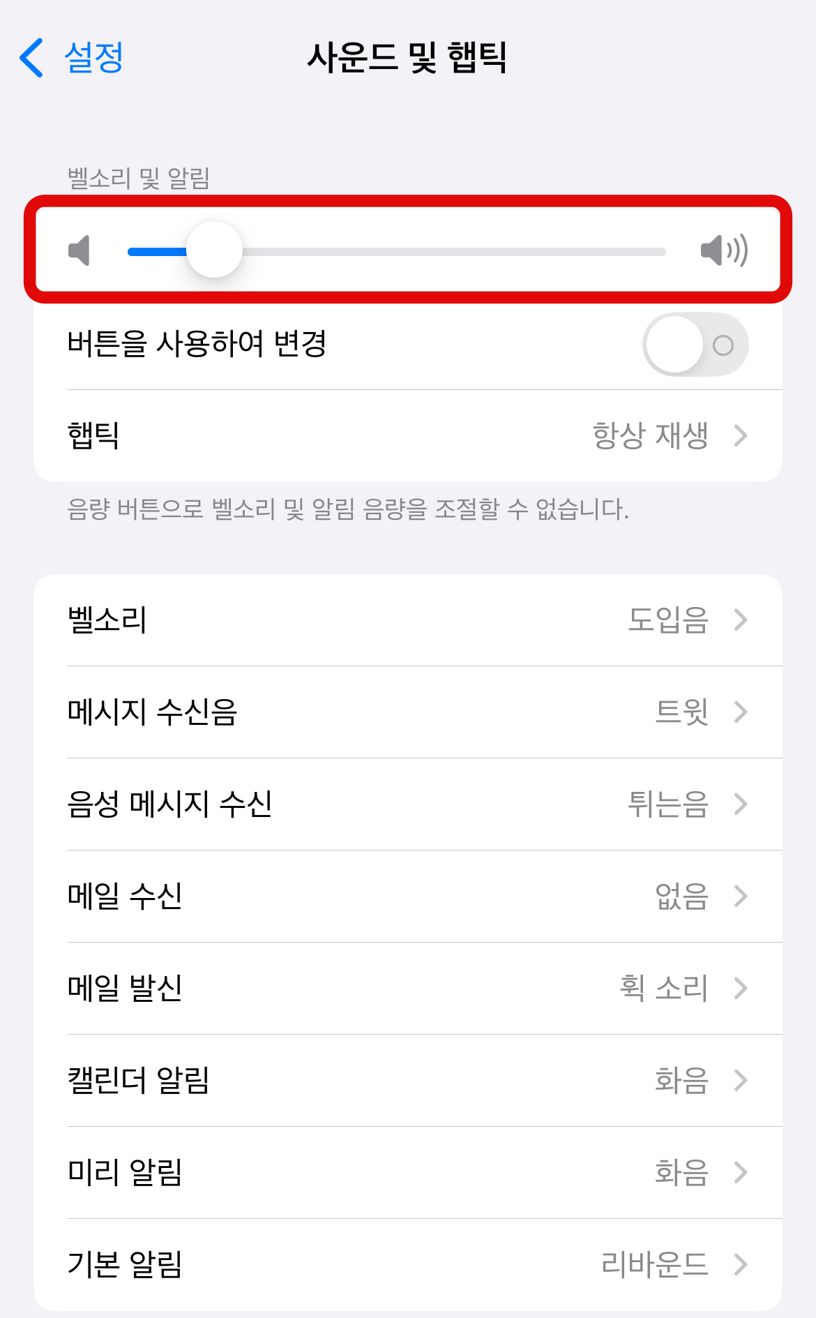 그리고 아이폰 알람 소리를 분명 크게 설정을 해두었는데 계속 작아져서 못 듣는 경우도 있었을 것이다. 아이폰 알람을 설정할 때 어딜 찾아보아도 소리 크기는 찾을 수 없다. 아이폰은 알람 소리만을 따로 설정을 못 하며 벨소리, 동영상 재생소리, 알림 소리, 알람소리까지 모두 같은 음량 버튼을 사용한다. 자기 전에 작은 소리로 유튜브를 보고 그대로 잔다면 알람소리가 작아져있는 것을 확인할 수 있을 것이다.