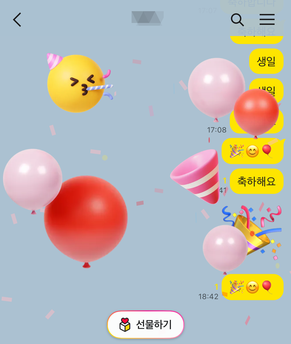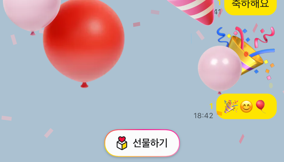 채팅창에 폭죽 쏘기를 눌러 폭죽을 쏘고 나면 카카오톡 선물하기 버튼이 나온다. 상대방에게 선물을 해주고 싶었다면 바로 클릭을 해서 카카오톡 선물하기로 넘어갈 수 있어 쉽게 선물을 할 수 있다. 선물하기로 유도를 하는 것 같은 느낌이 들지만 선물까지 해주면 상대방은 좋아할 것이다.