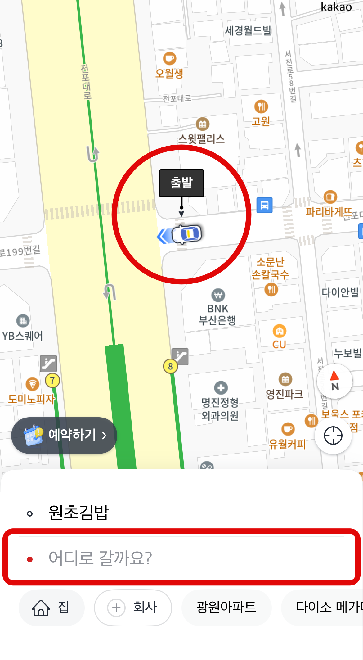 카카오택시 사용법은 카카오택시 어플을 다운로드한 후 어플에 들어간다. 첫 번째에 보이는 택시를 눌러 출발지를 지도상에 설정을 해주면 된다. 나의 위치에서 택시의 방향까지 나오니 쉽게 설정할 수 있을 것이다. 출발지점을 선택했다면 아래에 도착지를 검색하여 입력해 보도록 하자. 목적지를 검색하여 선택을 하면 된다.