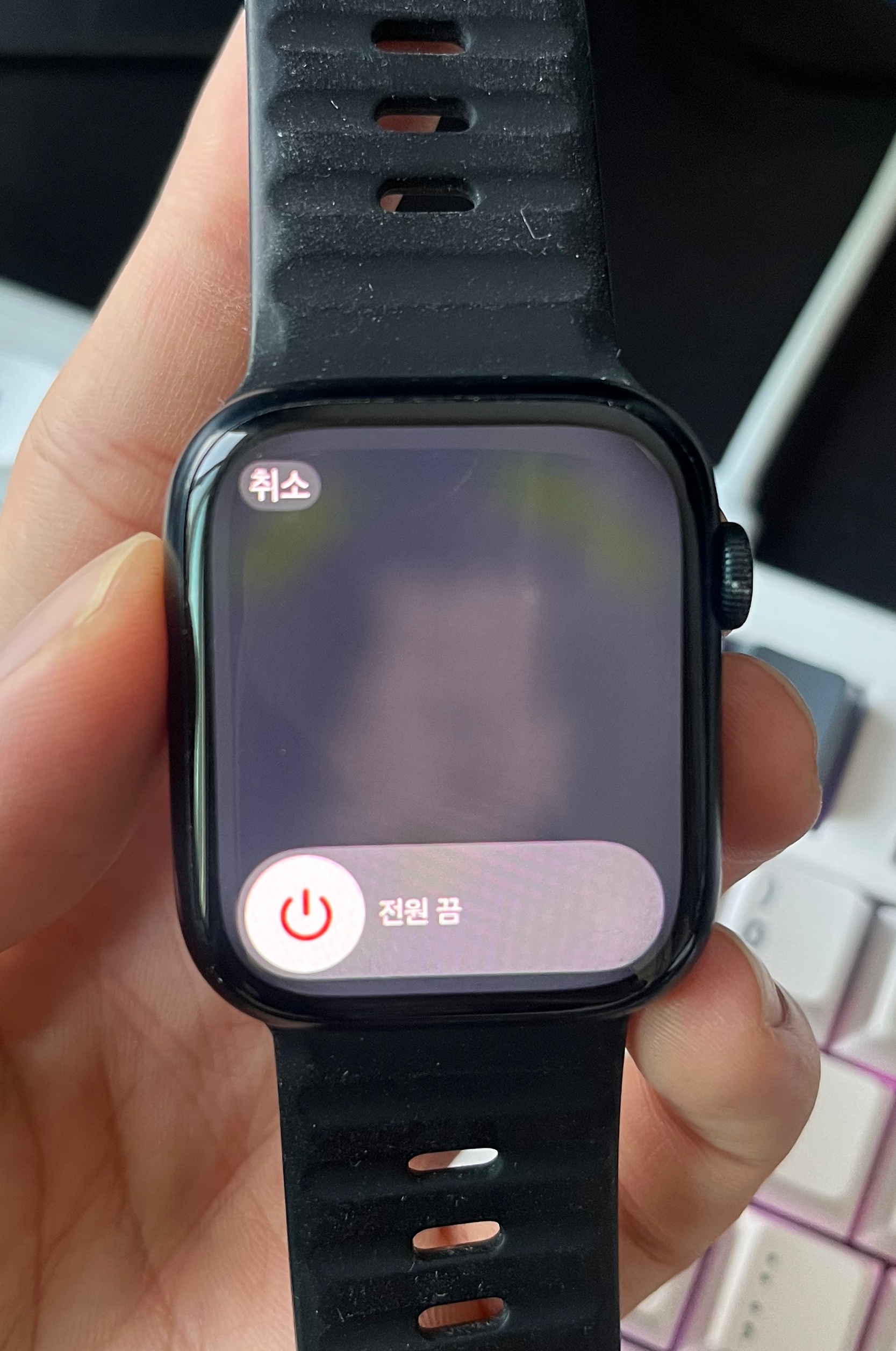 다음으로는 화면이 먹통이거나 애플워치가 작동하지 않을 때 애플워치 강제 재부팅하는 방법이다. 아까는 측면버튼만 꾹 눌러서 재부팅을 했지만 이번에는 강제 종료를 위하여 크라운버튼과 측면버튼을 함께 꾹 누른다. 10초간 꾹 누르면 애플 로고가 나오면서 강제로 꺼지는 것을 볼 수 있을 것이다. 무엇이든 강제로 종료를 하는 것은 기기에 도움이 되지 않을 것이다. 정말 먹통이 됐거나 사용이 안 될 때만 강제종료를 이용하는 것이 좋다.