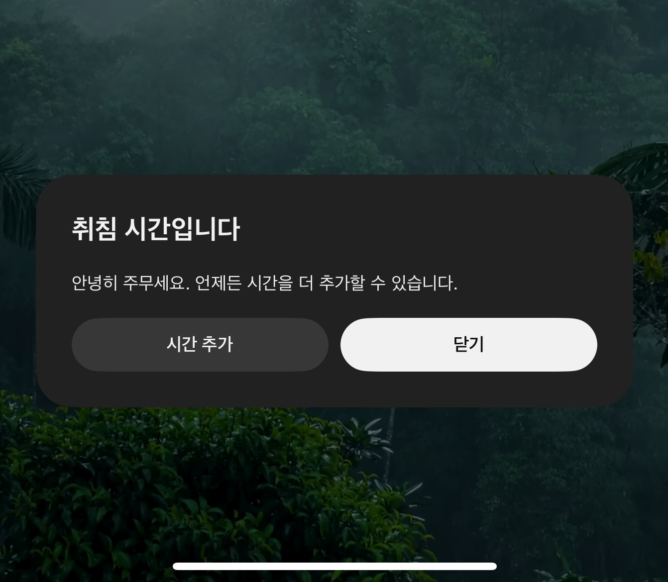 해당 시간이 모두 지나면 시청 중이던 영상은 멈추게 된다. 그리고 이어서 더 시청을 하려면 시간 추가를 할 수도 있다. 다시 설정에 들어가지 않아도 시간 추가를 누르면 바로 유튜브 취침타이머 설정이 가능하여 쉽게 설정이 가능하다.